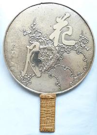 Antique Japanese Nagami white metal hand mirror – “Moonflower”